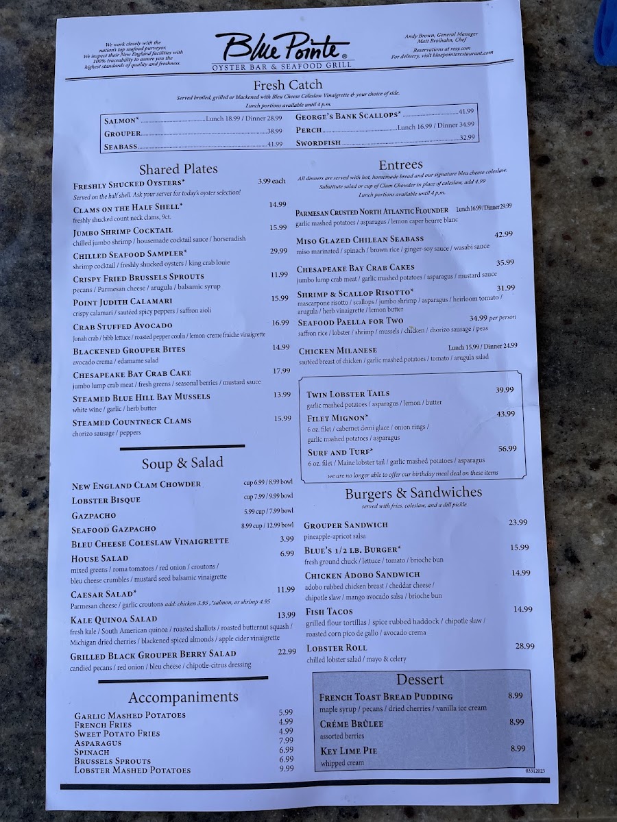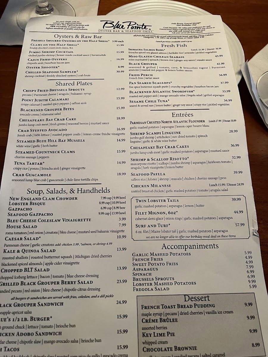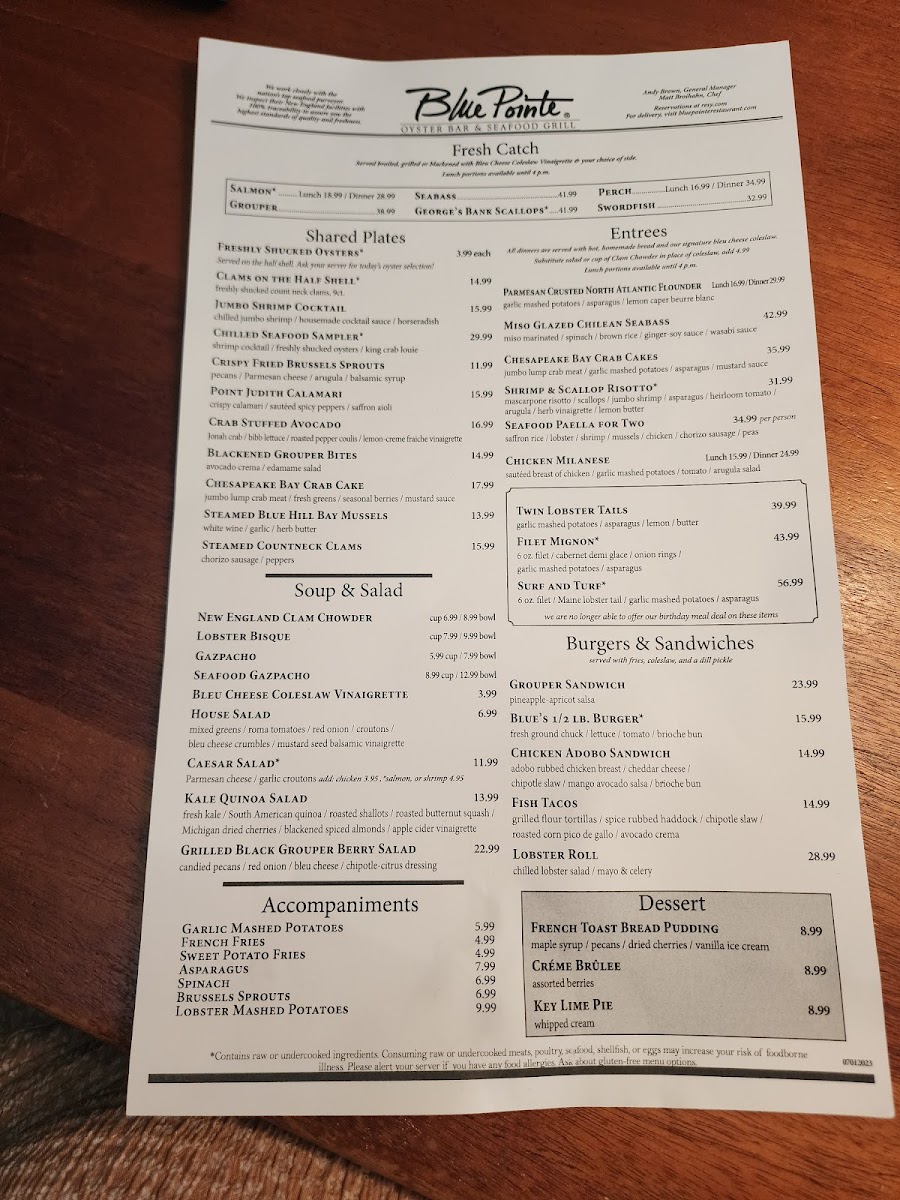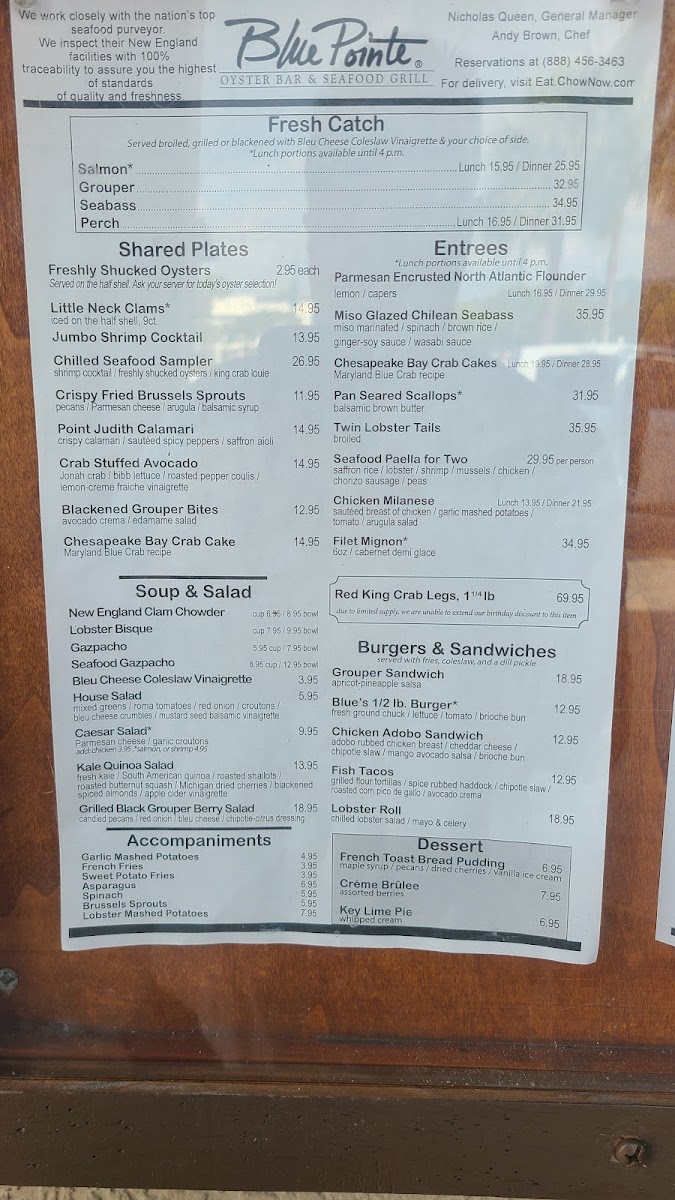If you're craving fresh, flavorful seafood, look no further than the Blue Pointe Oyster Bar & Seafood Grill Menu. Located in the heart of Fort Myers, this local gem serves up an impressive selection of seafood dishes, each prepared with care and bursting with coastal flavor. From juicy oysters to tender shrimp, every item on the menu is crafted to highlight the best of the sea. Whether you're in the mood for a hearty seafood platter, a light appetizer, or a mouthwatering entrée, there's something to satisfy every palate. With a welcoming atmosphere and top-notch service, it’s the perfect spot for both casual meals and special occasions. The menu also features a variety of dishes, from savory grilled fish to classic seafood pasta, ensuring that every visit offers something new to discover.